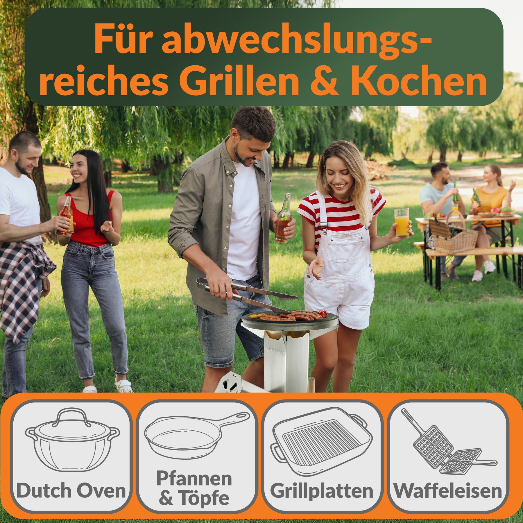 • Universal cooking attachment for fireproof pots, pans, grill plates or waffle irons