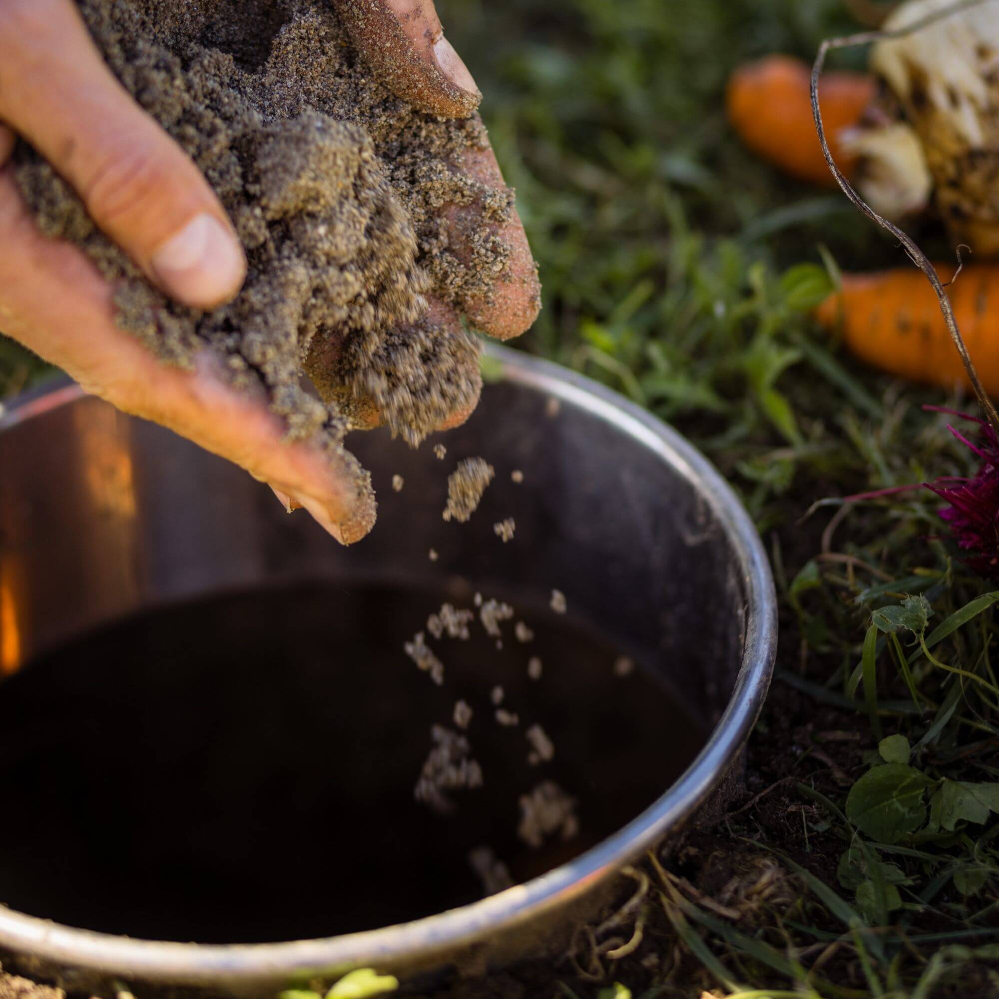 Gemüse (ungewaschen) lagenweise einfüllen – mit erdfeuchtem Sand bedecken.